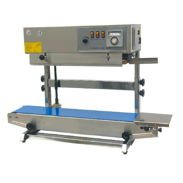FRB-770 series continuous band sealer can seal plastic films made from various materials continuously. Embossing printing device and counting device can be equipped. There are three models, including horizontal model (FRB-770I), vertical model (FRB-770II) and console model (FRB-770III).