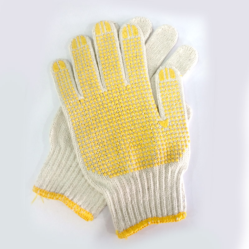 - ผลิตจากเส้นด้ายกาโต้ พิมพ์ พีวีซีบริเวณฝ่ามือ ใช้หยิบจับชิ้นงานหรืออุปกรณ์ได้อย่างมีประสิทธิภาพ สวมใส่สบายมือ กระชับ คล่องตัวไม่ลื่นหลุด