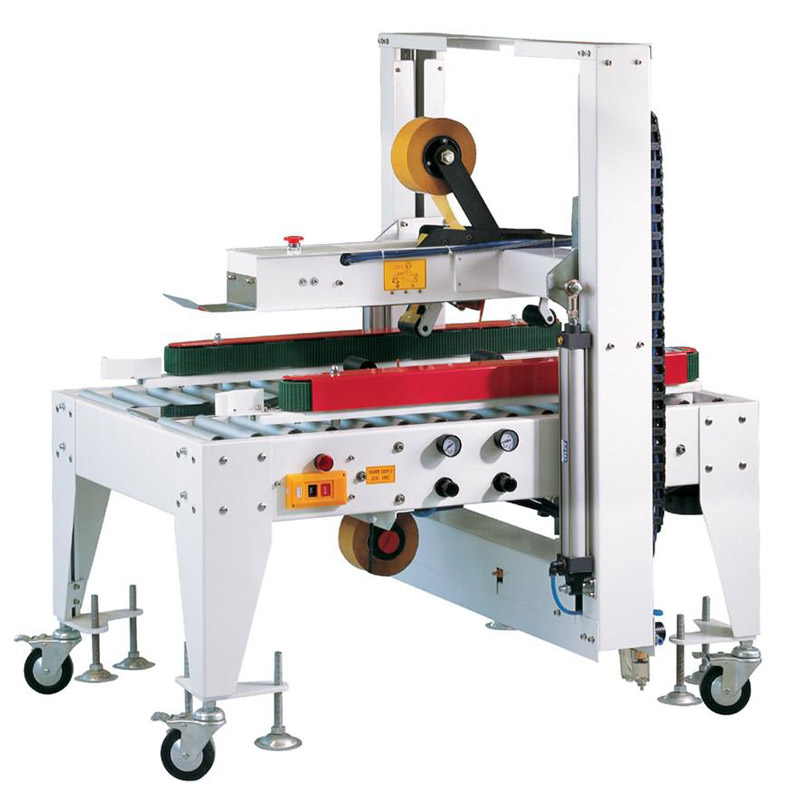 มีสายพานคู่ด้านล่าง ในการขับเคลื่อนกล่อง เครื่องสามารถปรับตามขนาดของกล่องได้อัตโนมัติแพ็คกล่องให้มีความ
