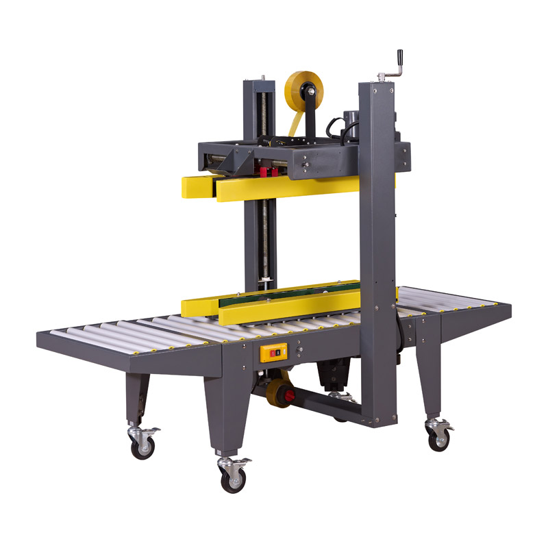 ใช้ปิดเทปกาวบนกล่องบรรจุภัณฑ์ที่ผ่านสายการผลิตระบบกึ่งอัตโนมัติ ปิดทั้งด้านบนและด้านล่างของกล่อง มีสายพานบนล่างในการขับเคลื่อนกล่อง เพื่อช่วยในการแพ็คกล่องมีความแข็งแรง คงทน ใช้เวลารวดเร็วจึงประหยัดแรงงาน สะดวกในการขนย้าย