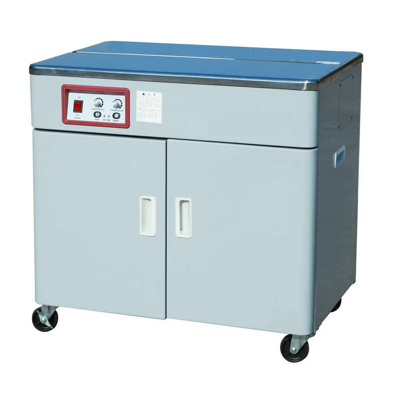 เครื่องรัดกึ่งอัตโนมัติ ออกแบบให้มีมอเตอร์ DC 2 เหมาะสำหรับอุตสาหกรรมเบา ใช้สาย PP เพื่อยึดสินค้าอย่างแน่นหนา หลังจากใส่สายรัดลงในเครื่องแพคแล้วจะใช้เวลาเพียง 2.0 วินาทีเท่านั้น เพื่อสิ้นสุดการต่อสายโดยอัตโนมัติ สามารถประหยัดค่าใช้จ่ายและค่าแรง สามารถปรับความตรึงแน่น และ ปรับอุณหภูมิความร้อนได้ จากแผงควบคุม ใช้งานง่ายและบำรุงรักษาได้ง่าย สายรัดไม่ติดขัดระหว่างการทำงาน