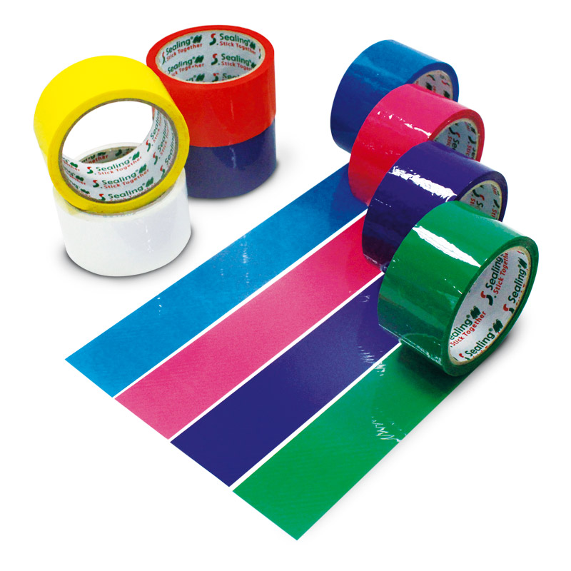 มีให้เลือก 8 สี ได้แก่ สีแดง,สีเหลือง,สีน้ำเงิน,สีเขียว,สีม่วง,สีสัม,และสีขาว เหมาะสำหรับงานปิดกล่องที่ต้องการความสวยงาม งานจัดหมวดหมู่ผลิตภัณฑ์ หรือตีเส้นภายในและภายนอกอาคาร